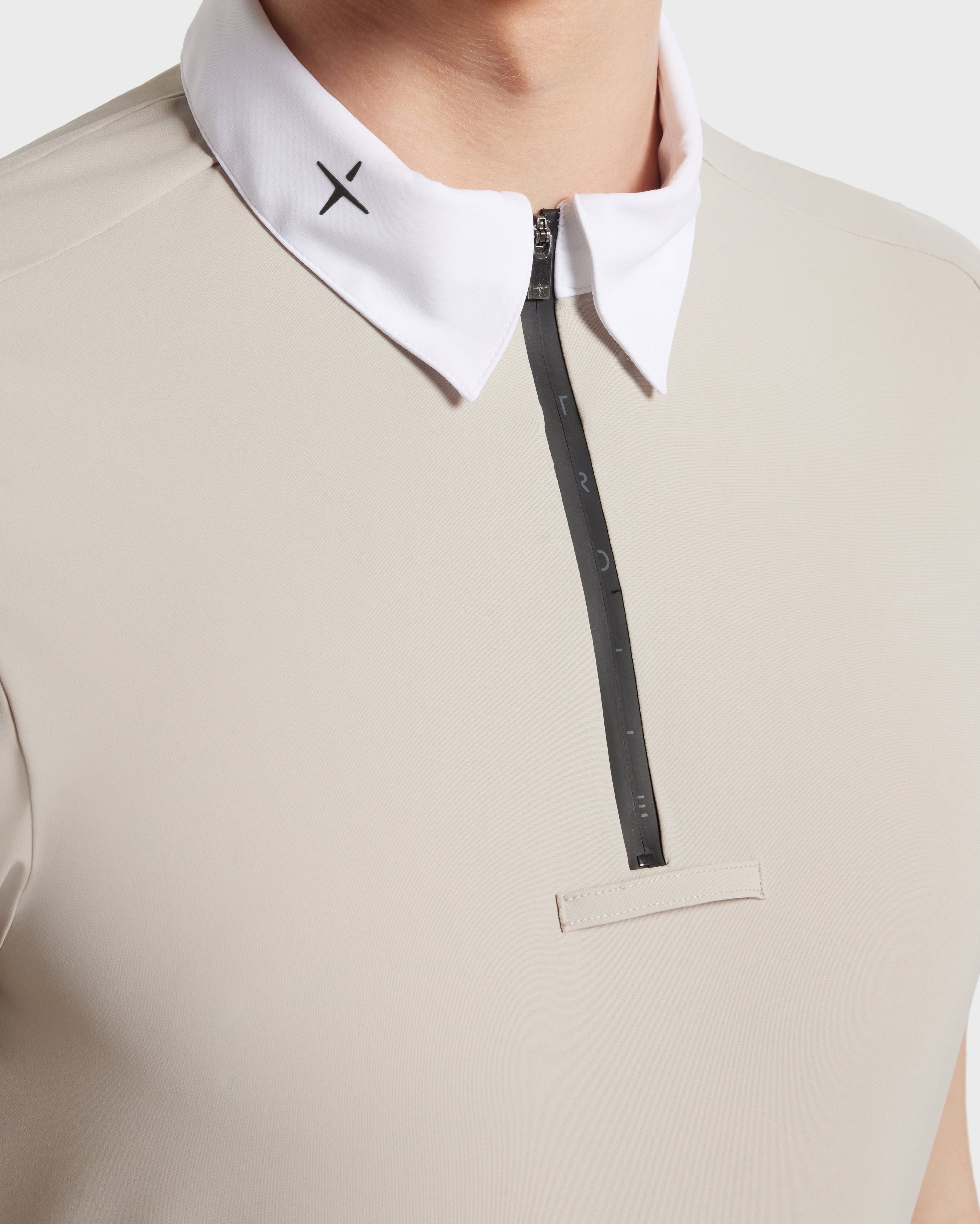This Competition Polo is specifically designed to perform. Crafted from technical jersey, it's breathable and quick-drying, enhancing functionality and comfort during intense activities. It features a sealed zipper closure with a delicate print for added style.