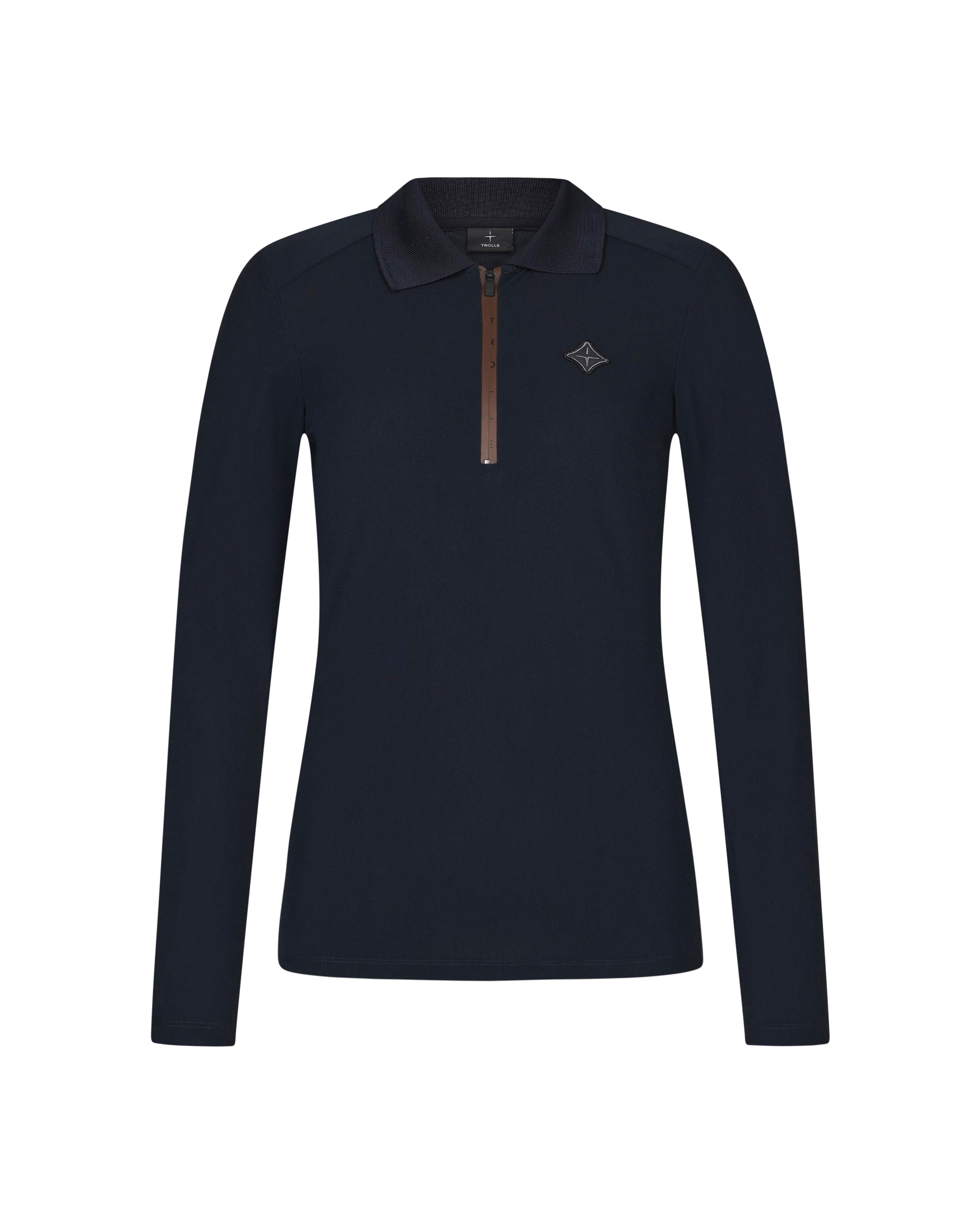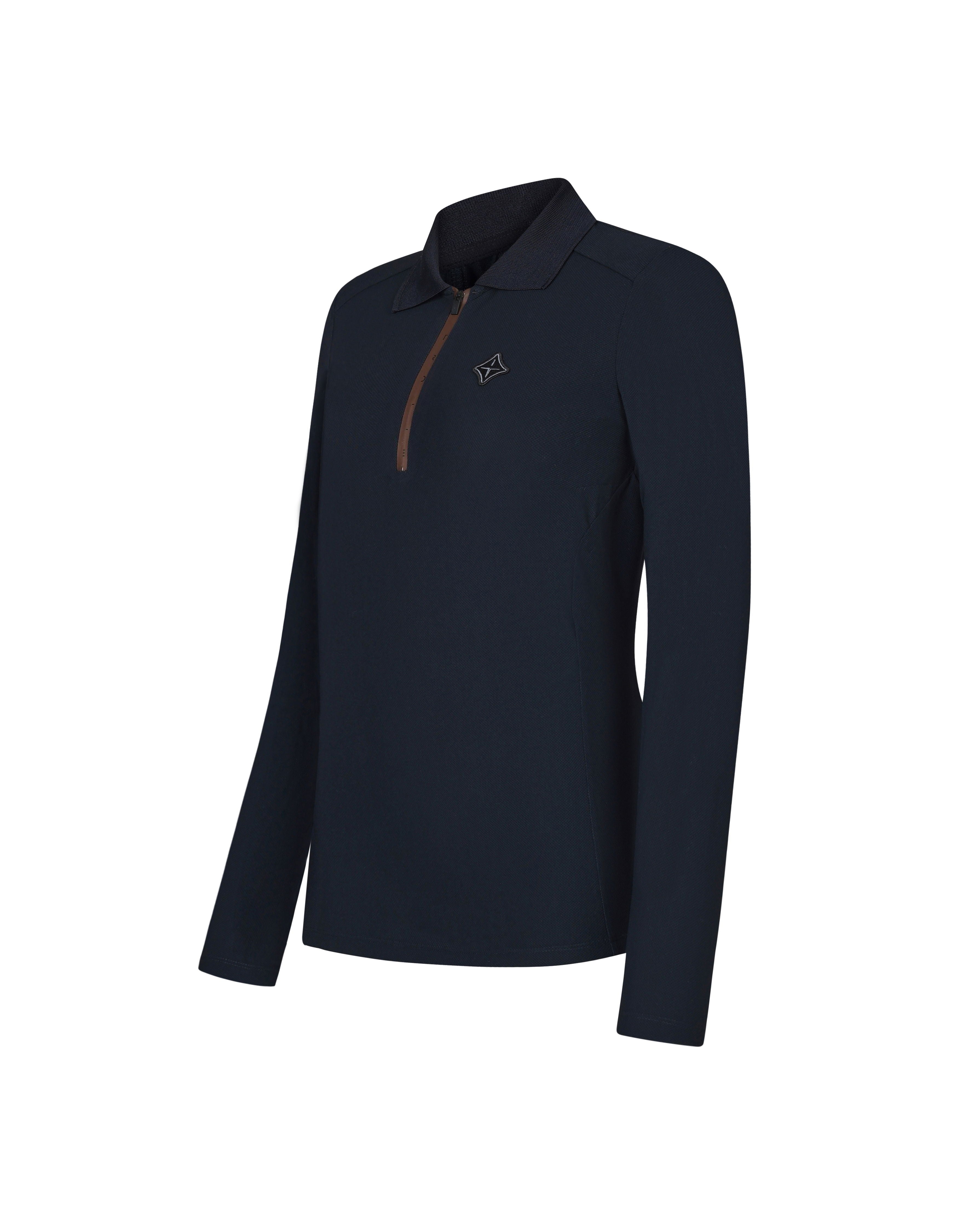 Pique Long Sleeve Zipped Polo Female - Navy/ Terra