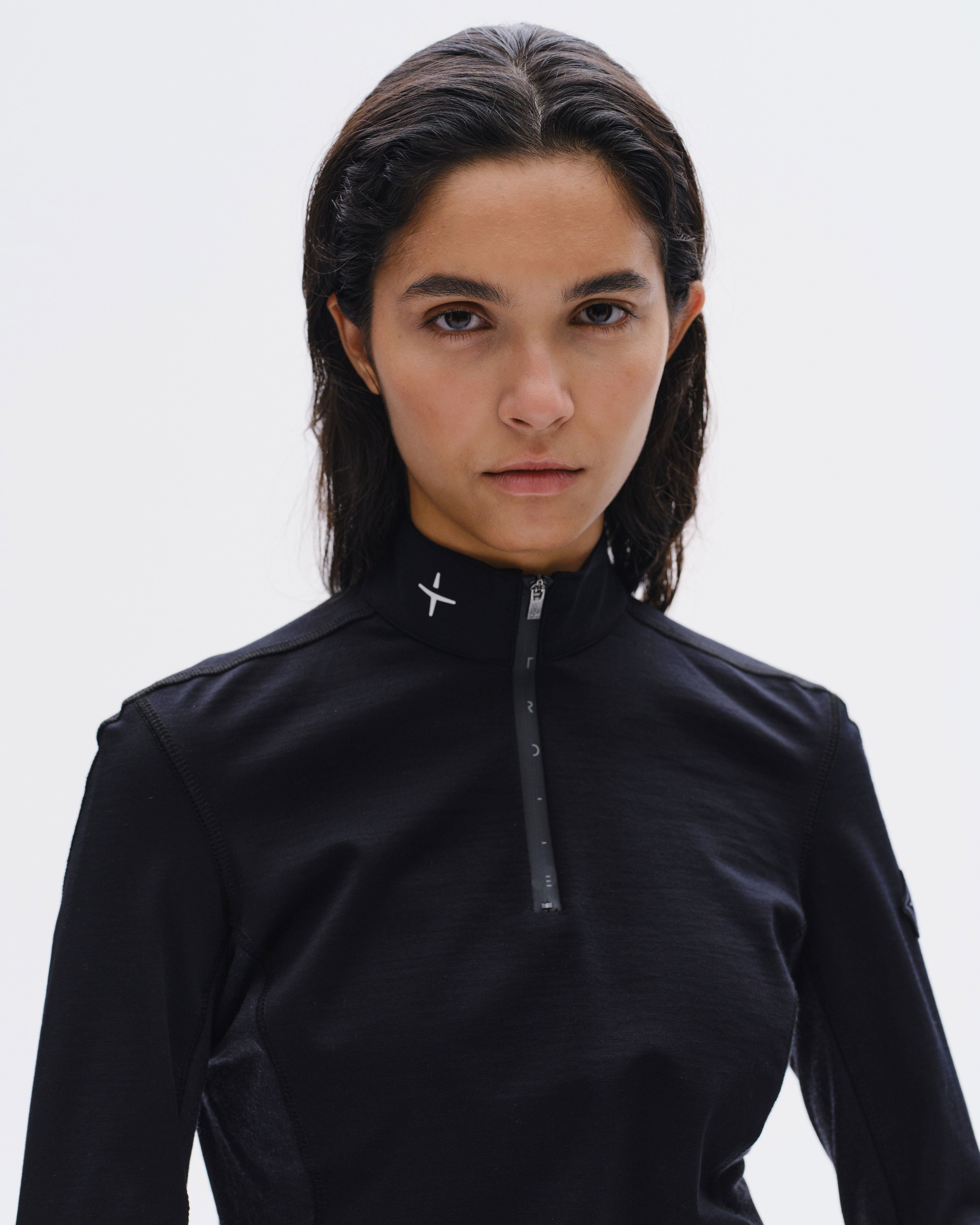 A light winter layer built for outdoor training. The body is crafted from Maclura™—a premium technical knit that blends wool and lyocell for breathable warmth and soft comfort. Sizzano™ side panels improve airflow during activity. Finished with a sealed zip, stand-up collar, and flatlock seams for a smooth, chafe-free fit.