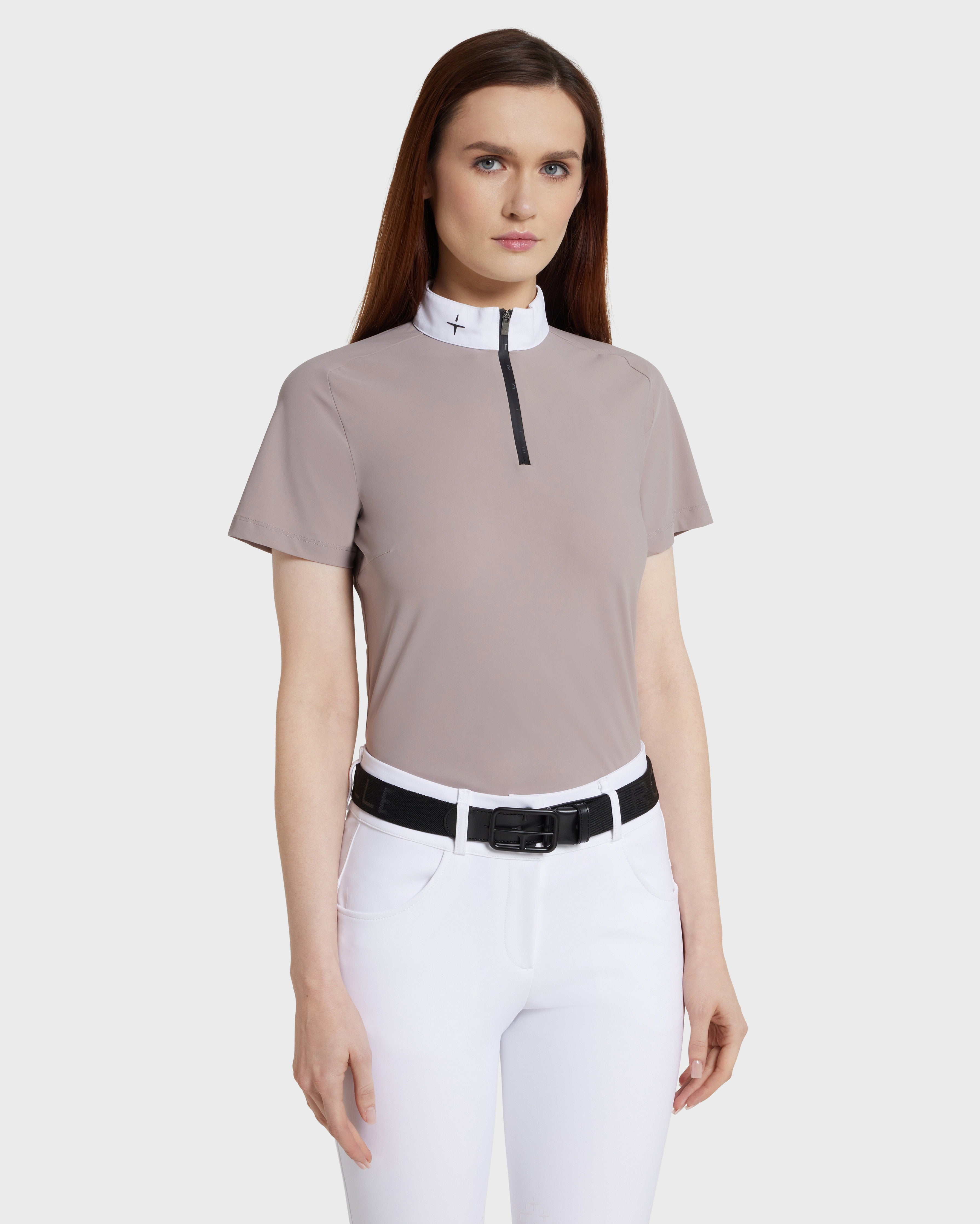 This Competition Polo is specifically designed to perform. Crafted from technical jersey, it's breathable and quick-drying, enhancing its functionality and wearability during heavy activity. It features a sealed zipper closure with a delicate print.